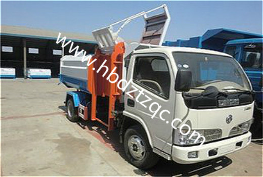 (5)、掛桶式垃圾車專用功能: 該車采用鏈條和液壓油缸聯(lián)動裝置,實現(xiàn)對垃圾斗提升和翻轉(zhuǎn),將多處垃圾斗內(nèi)的垃圾自動收入車廂,并到目的地一次性自卸出來。具有全密封,自裝自卸功能,液壓操作。適用于全國通用標準的垃圾桶:鐵桶、塑料桶,并大量供應垃圾掛桶。