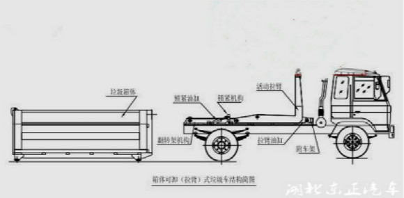 可卸式垃圾車又稱勾(拉)臂式垃圾車(以下簡(jiǎn)稱垃圾車)是用于城鎮(zhèn)袋裝、散裝生活垃圾物的收集、運(yùn)輸、卸料作業(yè)的專用車輛。
