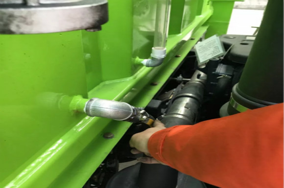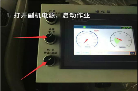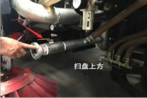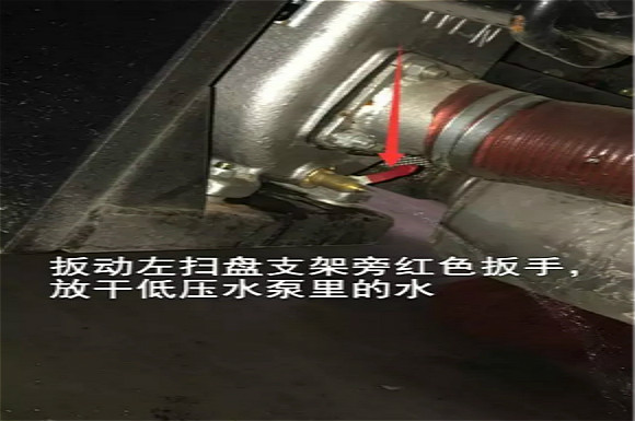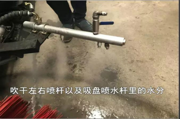 4.啟動底盤發(fā)動機(jī),采用氣吹水,吹干滯留在左右噴桿、吸盤噴水桿、后噴霧桿里的水分