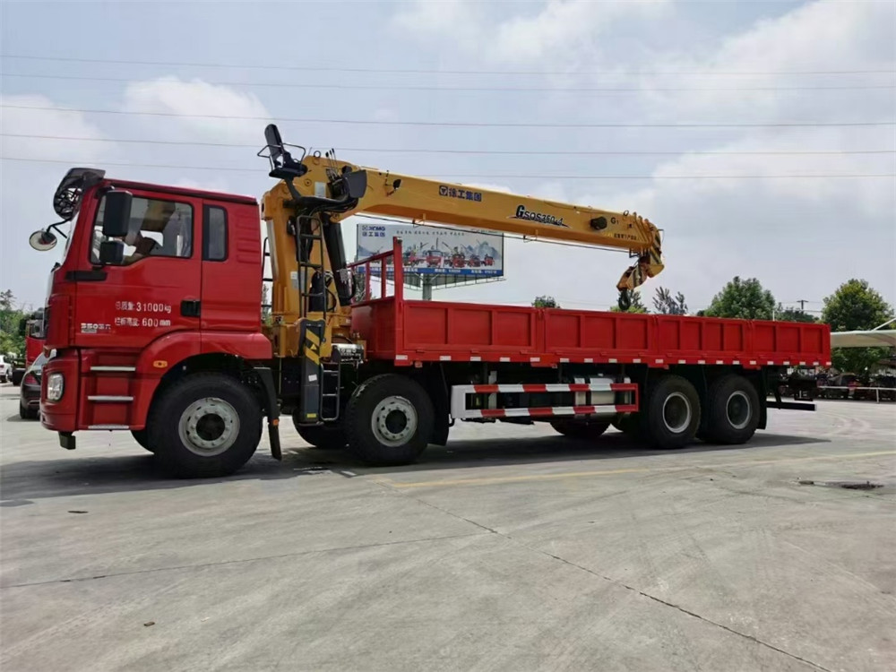 陜汽德龍新M3000國六前四后八 上裝徐工G系列14噸吊機(jī)采用陜汽德龍M3000平頂豪華駕駛室,濰柴350馬力,法士特十二檔變速箱帶高低速,308(8+5+8)通體三層加強(qiáng)梁,12.00R20鋼絲胎,前橋7.5T*2,后橋16T*2輪邊減速橋,軸距2100+4575+1400,帶氣囊座椅,,400鋁合金油廂,自動空調(diào),ABS,行車記錄儀遮陽罩 ,法士特原廠取力器,16**H免維護(hù)電池
